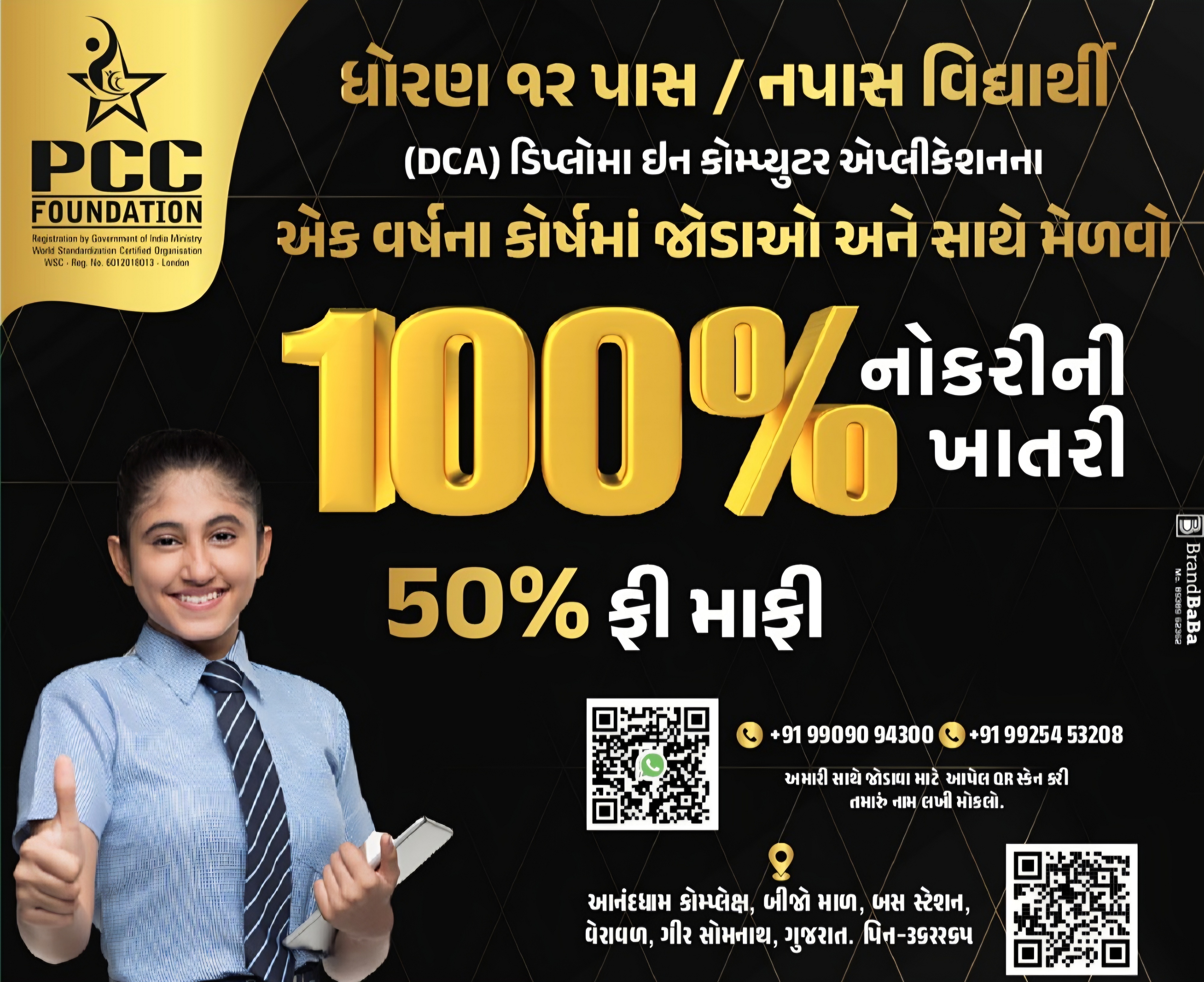 Our Foundation have good facilated system and the best area near bus stand in Veraval City. If You interested to know about Computer Education, so contact us & Follow us.